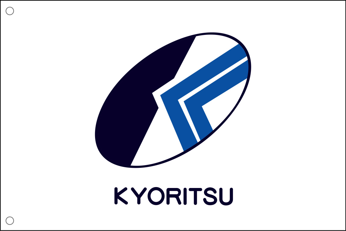 社旗の原稿案をお送りいたします。白地の旗の中央に紺と青のロゴマークを配置したデザインとなっております。旗のサイズは高さ90cm、横135cmの大きさです。マークの大きさなどのバランスについてご検討くださいますようお願いいたします。また、紺と青に色指定があるようでしたらご連絡ください。画像をクリックすると拡大表示されます。