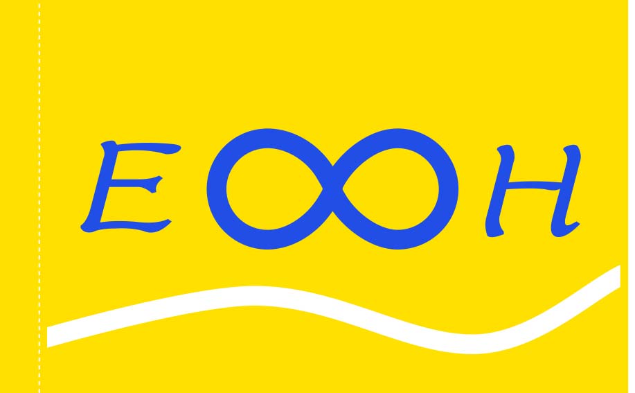 旗の原稿イメージを修正いたしました。黄色の地色を少し明るくしました。また「EH」の書体を変更して、最初の書体に近いイメージのものに置き換えております。その他の仕様は前回通りで、旗のサイズは横45cm高さ30cm、旗の周囲はヒートカット仕上げ、左側は袋縫いにして、塩ビのパイプを取り付けます。画像をクリックすると拡大表示されます。修正点、変更点などありましたらご連絡くださいますようお願いいたします。