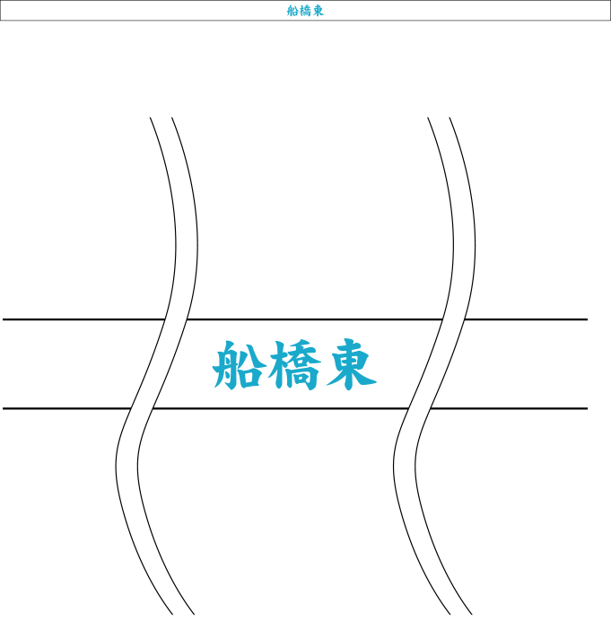 はちまきの仕上がりイメージです。既製品の白無地のはちまき(HM-1001)の額部分に刺繍で名入れをします。入れる文字は「船橋東」の3文字で色は水色で加工いたします。はちまきのサイズは4cm幅で長さ120cm、生地は木綿になります。版下は楷書体でレイアウトしております。修正点、変更点などありましたらご連絡ください。画像をクリックすると拡大表示されます。