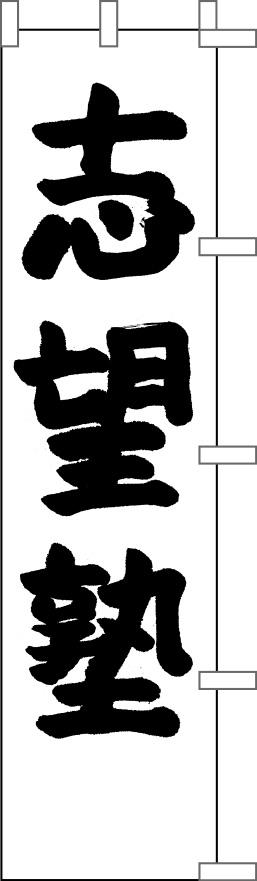 原稿内容は、白地に黒文字で「志望塾」の3文字が入ります。文字の書体はいただいた資料を取り込んでレイアウトを作成しております。文字の大きさや配置などについて、修正点・変更点などありましたらご連絡くださいますようお願いいたします。