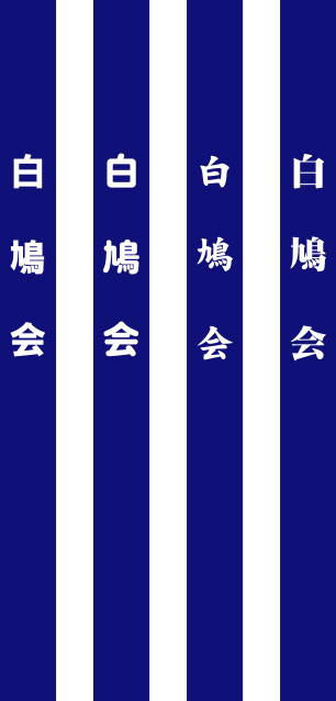 原稿内容は「白鳩会」の3文字をたすきの前後にプリントします。下の原稿イメージは半分折りにした場合の画像ですので、実際には前と後ろに同じ文字が印刷されます。