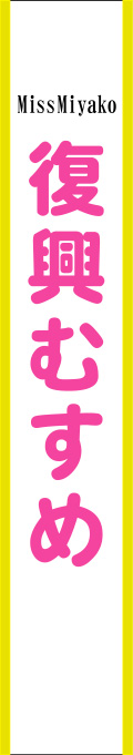 修正内容は、上の方の「MissMiyako」のアルファベットを左側から3番目の書体、その下の「復興むすめ」のメイン文字を「丸ゴシック体」の組み合わせにしております。