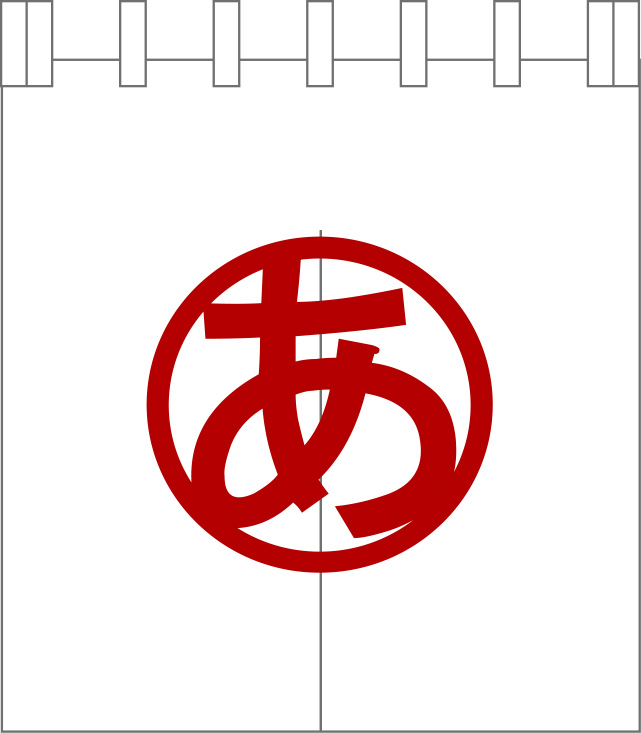 お送りいただいたデータをもとに、白地の中央部分に「丸」に「あ」のマークを入れます。ロゴマークの色はエンジです。色はデータの色を参照して作成しますが、色指定がありましたらご連絡ください。
