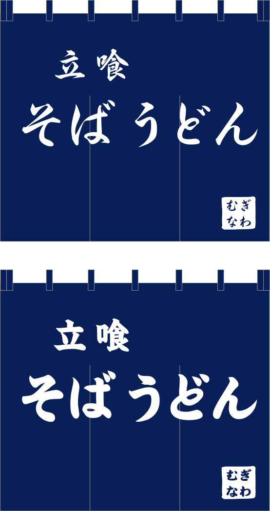 文字内容は、「立喰そばうどん むぎなわ」の文字を横組みでレイアウトしております。文字の書体は2種類で原稿を作成しておりますのでご検討ください。
