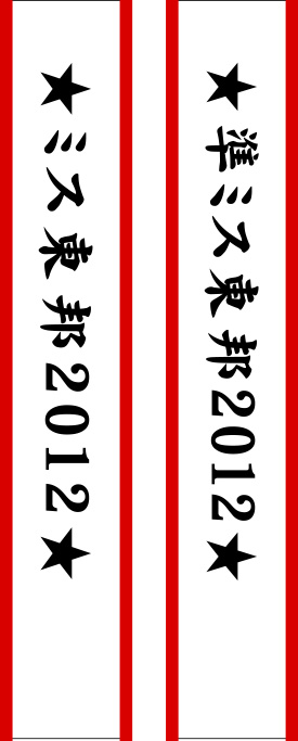 原稿内容は「ミス東邦2012」と「準ミス東邦2012」の2種類になります。2011版にあわせて、文字の上下に「星マーク」を入れております。書体は昨年を同じ楷書体でレイアウトを作成しております。