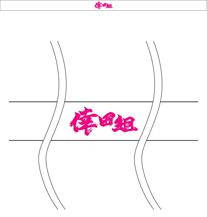 名入れ内容はお送りいただいた「倖田組」の3文字をはちまきの額部分にプリントします。ピンクの色は前回の「Image」はちまきと同じ色になっています。