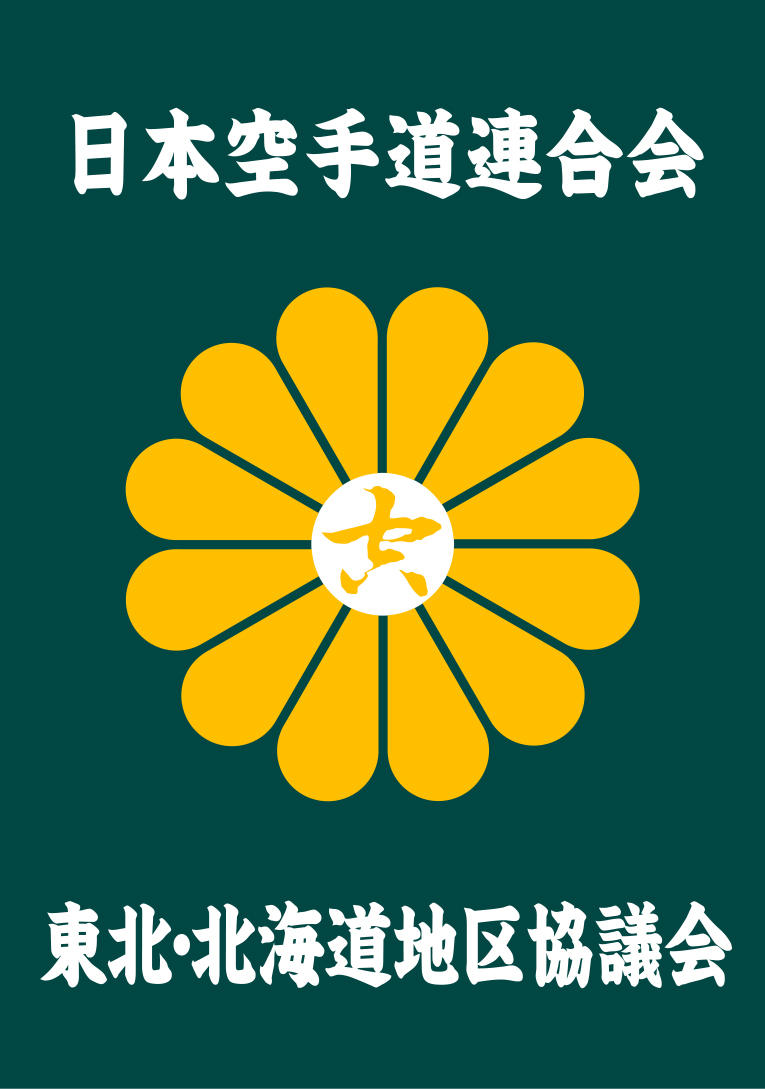 旗の原稿イメージをお送りいたします。大きさは前回と同じ、横幅約135cm×高さ約192cm、エクスランという名称のアクリル生地を使った旗になります。原稿の内容は、緑色ベースの旗の中央に黄色のマークを配置し、上には「日本空手道連合会」、下には「東北・北海道地区協議会」の文字を白で入れます。マークの大きさなどは前回と同じサイズでレイアウトを作成しております。文字の位置や大きさなど、原稿内容に修正点・変更点などがありましたらご連絡ください。また画像をクリックすると拡大表示されます。