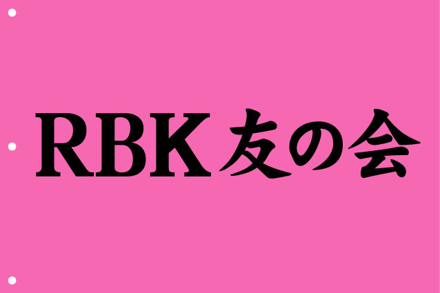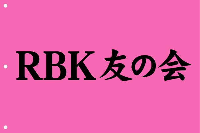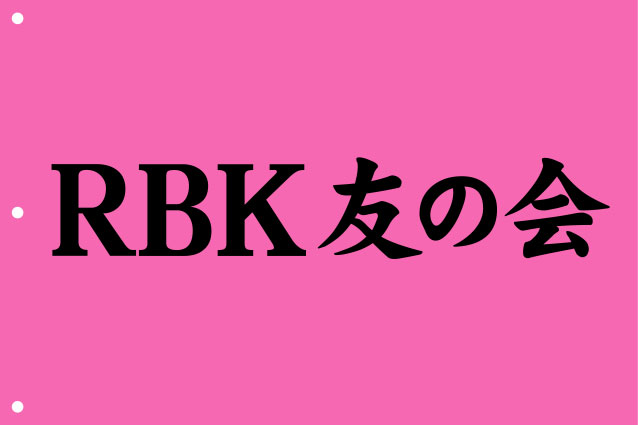 手旗の原稿を作成いたしました。本体は横45cm×高さ30cmのサイズ、テトロンポンジ生地を使用した手旗になります。左隅3か所にハトメ加工を施します。原稿は、旗の中央に「RBK友の会」の6文字を大きく配置したレイアウトになります。下地の色は深中と同じピンク色、文字の色は黒です。文字の書体は楷書体で原稿を作成しております。書体や文字の位置、大きさなどに修正点・変更点などがありましたらご連絡ください。また画像をクリックすると拡大表示されます。
