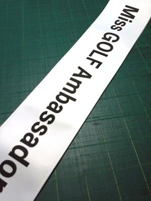 2021/11/24 Miss GOLF Ambassador たすき 更新日:2023年8月25日 公開日:2021年11月24日 たすきの原稿デザインオリジナル品の原稿デザイン 光沢感のあるタスキに黒文字を名入れ印刷します。たすきの巾は14cmです。文字の書体を変えて3案作成しております。 続きを読む