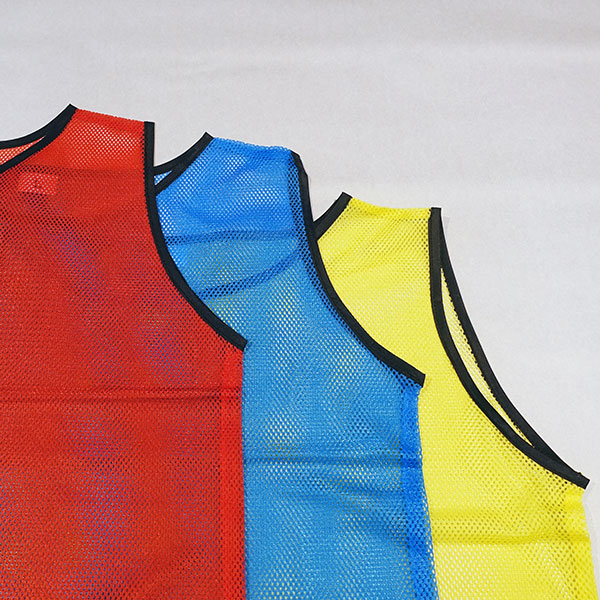 既製品のメッシュビブスを販売しております。軽快なメッシュ素材を使用しております。色は赤、青、黄の3色をご用意しております。